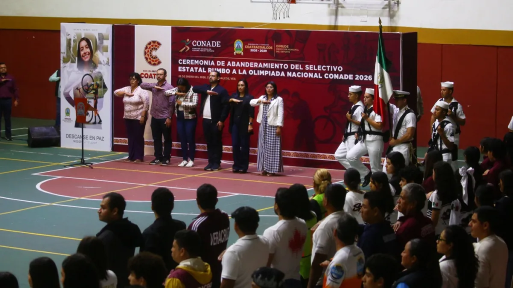Coatzacoalcos se consolida como un semillero de deportistas en diversas disciplinas, afirmó el alcalde Pedro Miguel Rosaldo García durante la ceremonia de abanderamiento del selectivo estatal que representará a Veracruz en la Olimpiada Nacional CONADE 2026.