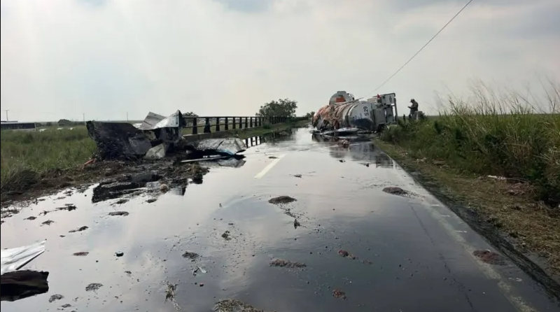 Intensa movilización se registró la tarde de este sábado 6 de diciembre en la carretera Coatzacoalcos–Minatitlán, tramo Las Matas, a la altura del puente, tras la volcadura de un autotanque que transportaba más de 10 mil litros de aceite de palma grado alimenticio.