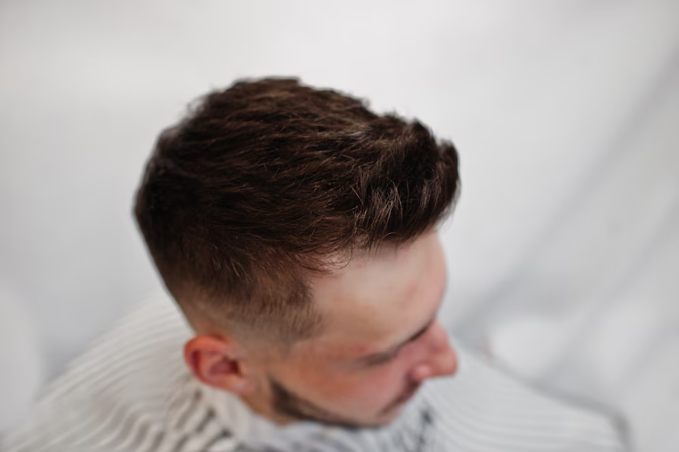 El textured crop con mid fade se posiciona como uno de los cortes más elegidos en barberías. Se caracteriza por una parte superior corta con textura, combinada con un desvanecido a media altura en los laterales.