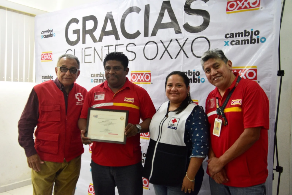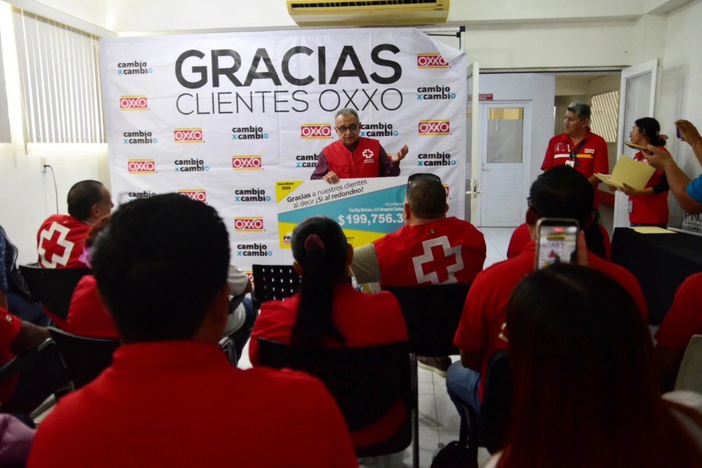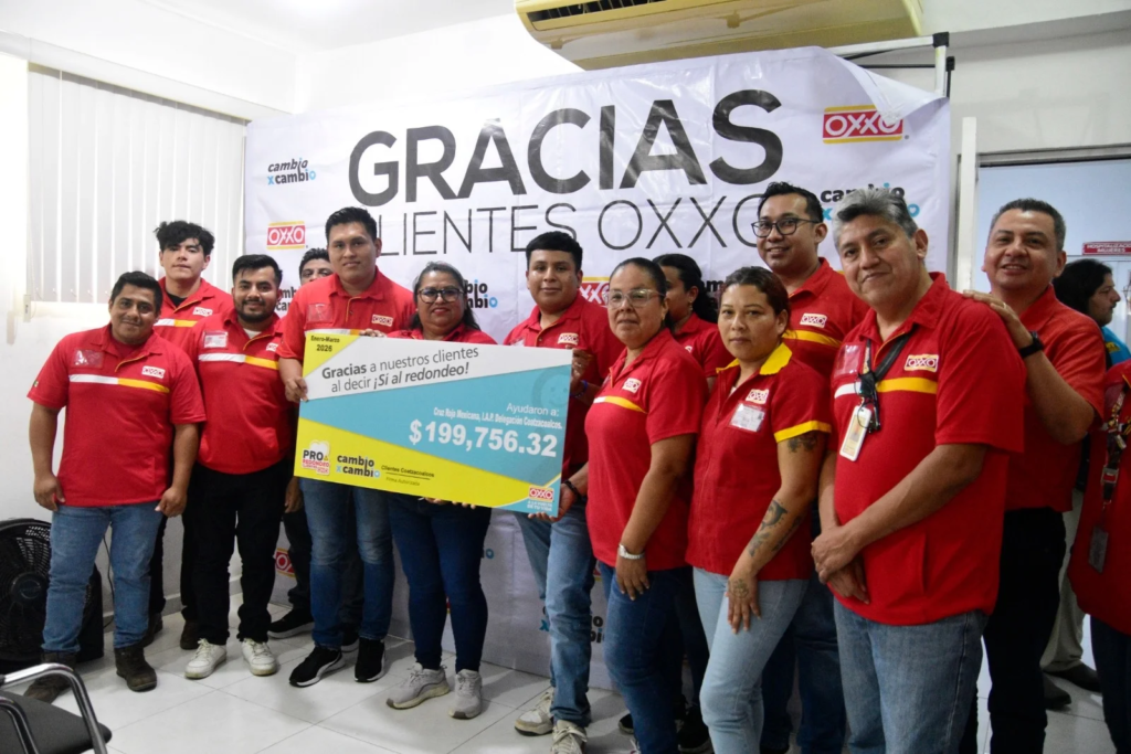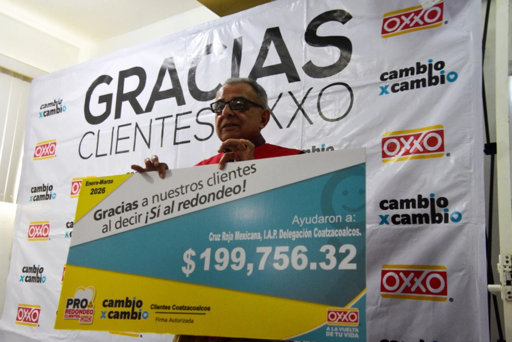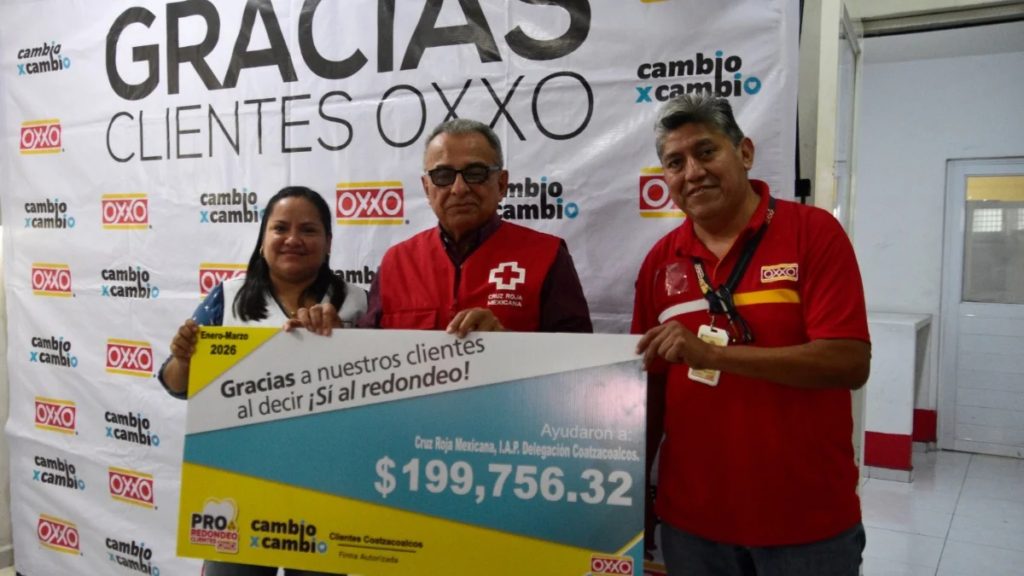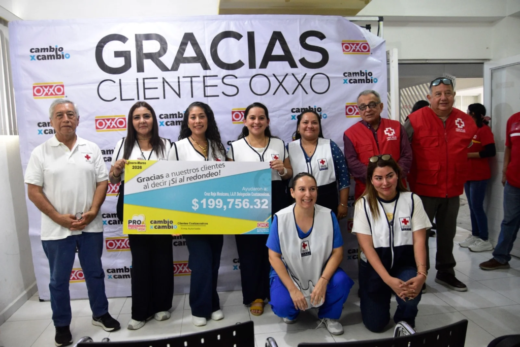 La Cruz Roja Mexicana, delegación Coatzacoalcos, recibió un donativo cercano a los 200 mil pesos por parte de la cadena Oxxo, como resultado del programa de redondeo “Cambio por Cambio”, correspondiente al trimestre enero-marzo de 2026.