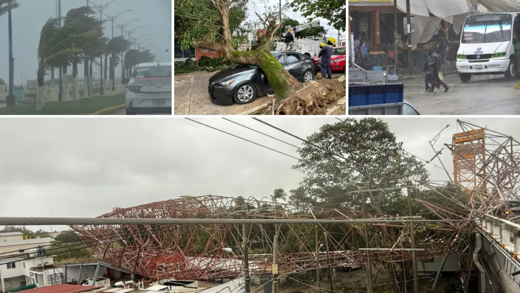 El paso del sistema frontal en Coatzacoalcos y otras zonas cercanas dejó rachas de viento de entre 90 y más de 100 kilómetros por hora, que además de derribar estructuras eléctricas, provocaron la caída de árboles, postes de alumbrado y elementos urbanos, afectando la movilidad y la infraestructura municipal.