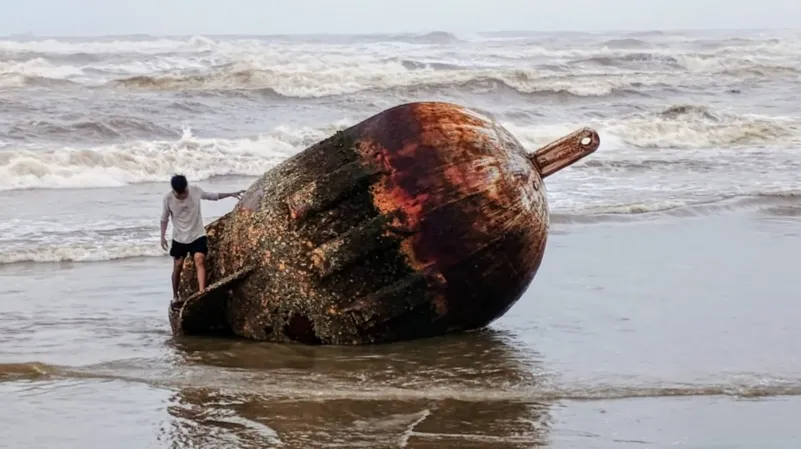 La fuerza de las olas, impulsadas por los vientos del norte, trajeron una enorme cantidad de palotada sobre las escolleras, además que una enorme boya de aproximadamente tres metros de largo recaló a orillas del mar a la altura del asta bandera.