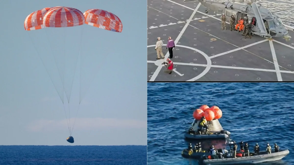 Inmediatamente después del amerizaje, un equipo especializado a bordo del buque USS John P. Murtha entró en acción. Los equipos médicos y militares aseguraron la cápsula y extrajeron a los astronautas con total seguridad para su evaluación.